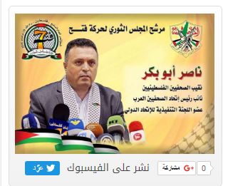 في منشور على فيسبوك بتاريخ 11 مارس/آذار 2016، نشر ناصر أبو بكر ملصقًا لنقابة الصحفيين يدعو إلى وقفة تضامنية مع قناة “فلسطين اليوم”.