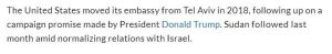 في حين أعلنت السودان عن التطبيع مع إسرائيل الشهر الماضي، إلا أنها لم تفتح سفارة في القدس أو في أي مكان آخر في الدولة اليهودية، ولا توجد سفارة سودانية في إسرائيل. بالإضافة إلى ذلك، فإن الإعلان السوداني الأمريكي الإسرائيلي المشترك ، لا يذكر تبادل السفارات، وذكرت صحيفة واشنطن بوست، من بين أمور أخرى: لا يستلزم الاتفاق على الفور إقامة علاقات دبلوماسية كاملة، على سبيل المثال تبادل السفارات، لكنه اتفاق لبدء المناقشات حول التطبيع مع التركيز الأوّلي على الأمور الاقتصادية والمسائل ذات الصلة. عند تلقي اتصال من CAMERA، قامت UPI على الفور بتصحيح العنوان المعدل الآن بدقة: “مالاوي ستفتح سفارة في إسرائيل في القدس”. وبالمثل، فإن الجملة الأولى المصححة تقول: “تخطط حكومة مالاوي لفتح سفارة في إسرائيل في القدس”.