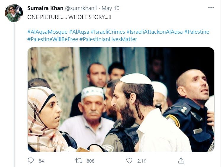 وفي تغريدة أخرى سخرت من تغطية الشأن الإسرائيلي في هيئة الإذاعة البريطانية نفسها، وفي الثالثة، أعربت عن سرورها لرؤية الإقبال على الاحتجاج الذي شاركت فيه عضوة البرلمان البريطاني “زارا سلطانة”.